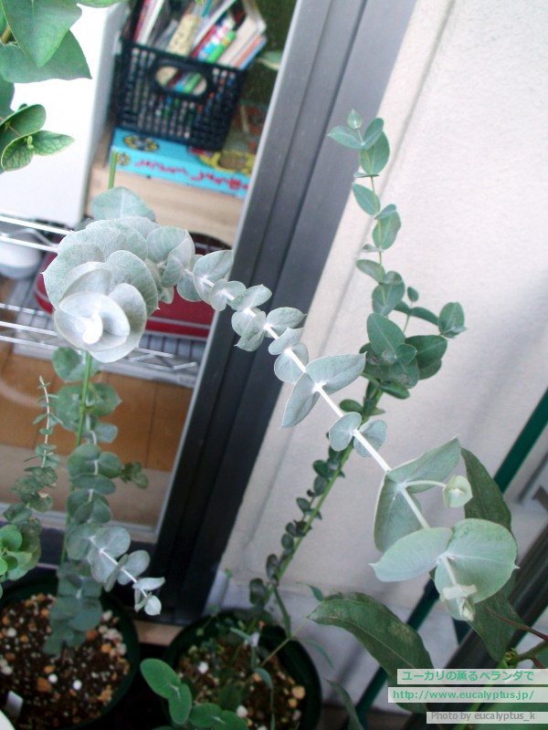 家のベランダで一番ノッポなユーカリ達です。