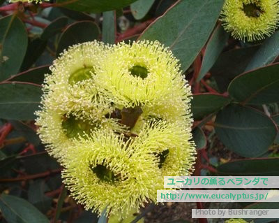 花自体はクリーム色の一般的なユーカリの花ですが、